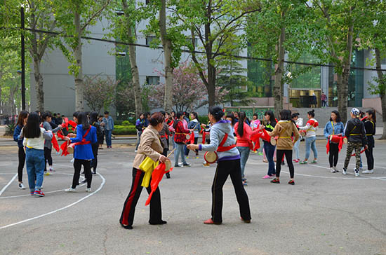为丰富学生的校园文化生活,让学生感受中华民族悠久的历史文化,培养学生的团结协作精神,4月11日下午,师范/文化创意天行体育官方网站邀请原潍坊市艺术团团长张慧军老师来该院指导腰鼓社团的活动。