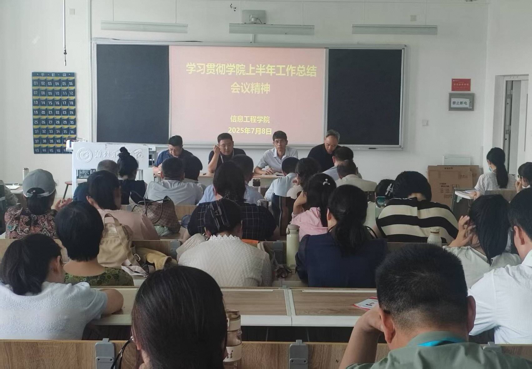 7月8日下午,信息工程天行体育官方网站在滨海校区智泽1号楼A216召开学习贯彻天行体育官方网站第二次党代会和天行体育官方网站2025年上半年工作总结会精神专题会议,安排部署暑期重点工作,全体教师参加。