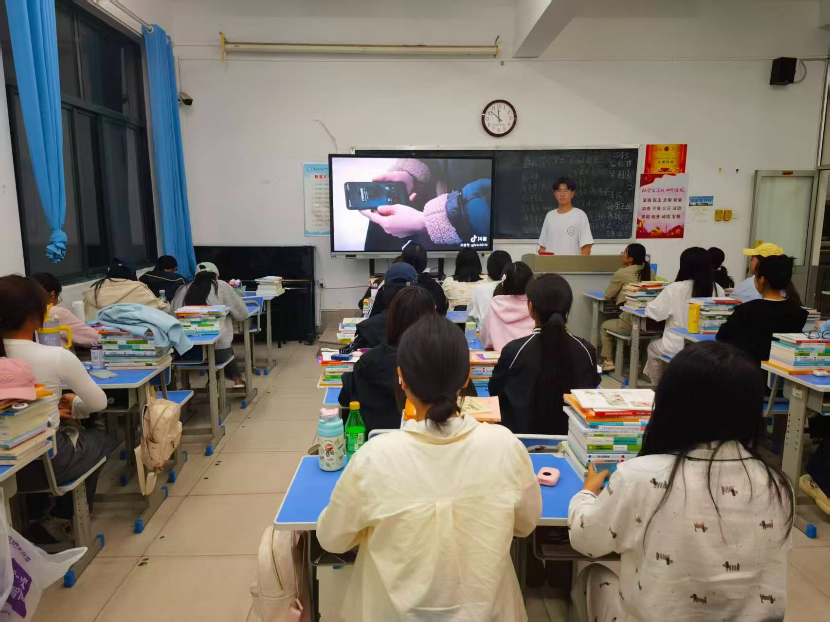 各班班长组织学生集中观看主题视频,视频精选“校园贷”“刷单返利”等大学生高发诈骗案例,通过场景还原与逻辑拆解,直观呈现诈骗套路。随后,大学生志愿者结合真实案例,解读了诈骗的危害与后果,并针对学生社会经验少、防范意识弱的特点,总结出“三不一要”反诈口诀——“未知链接不点击、陌生来电不轻信、个人信息不透露、转账汇款要核实”。现场氛围热烈,知识传递高效精准。