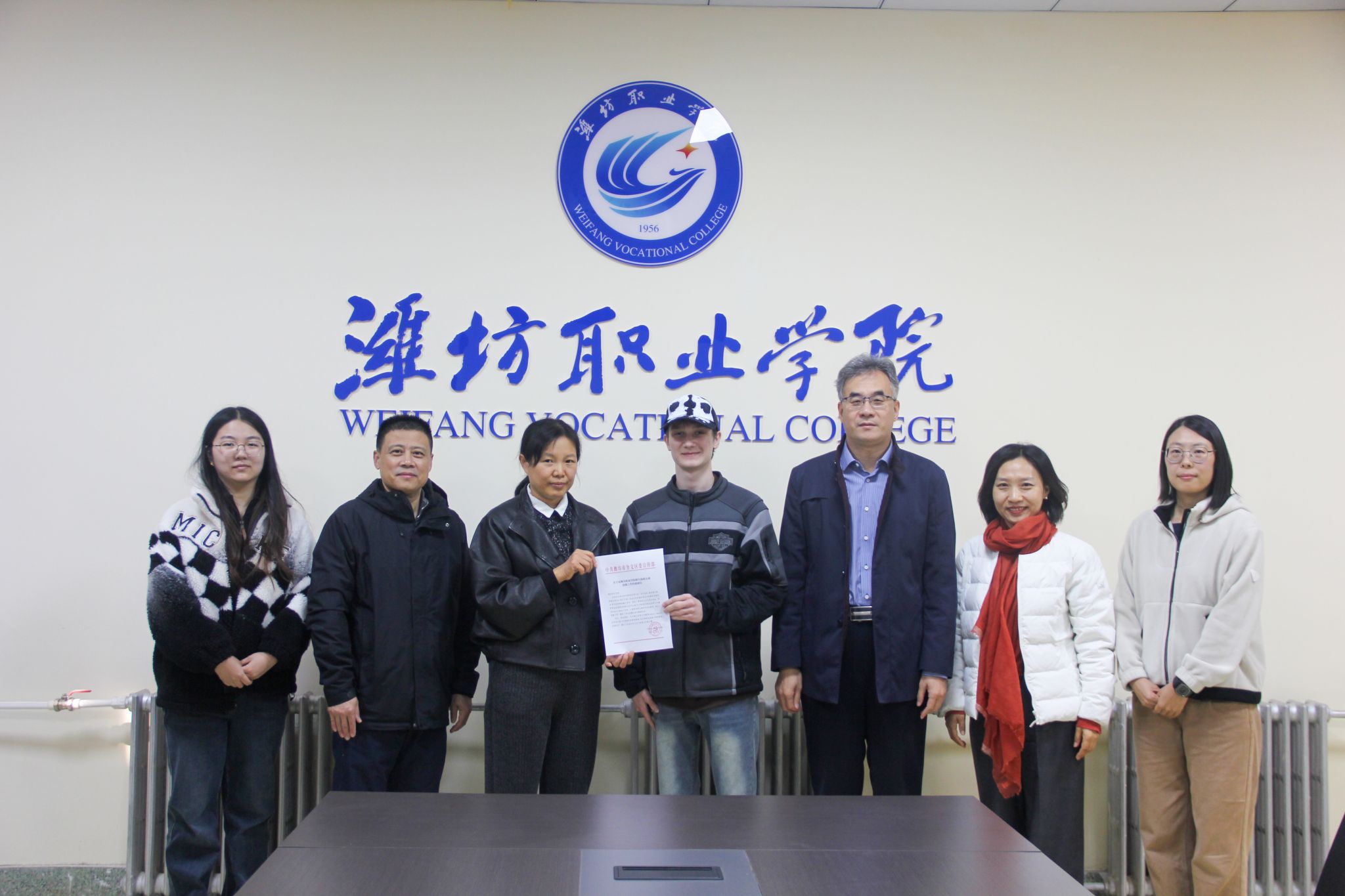 吕爱红向国际交流与合作处留学生管理科教师韩冰与留学生马康(俄罗斯)转交了中共奎文区委宣传部的感谢信,感谢天行体育官方网站在本次视频拍摄过程中的大力支持与帮助。天行体育官方网站师生在中国网《洋观中国│和平坐标·潍县集中营:黑暗中的光》献礼中国人民抗日战争暨世界反法西斯战争胜利80周年短视频拍摄工作中以高度的责任感和专业素养圆满完成了拍摄任务、为中外文化交流事业贡献了积极力量。随后,双方围绕天行体育官方网站来华留学生参与中外文化交流互动展开深入交流。