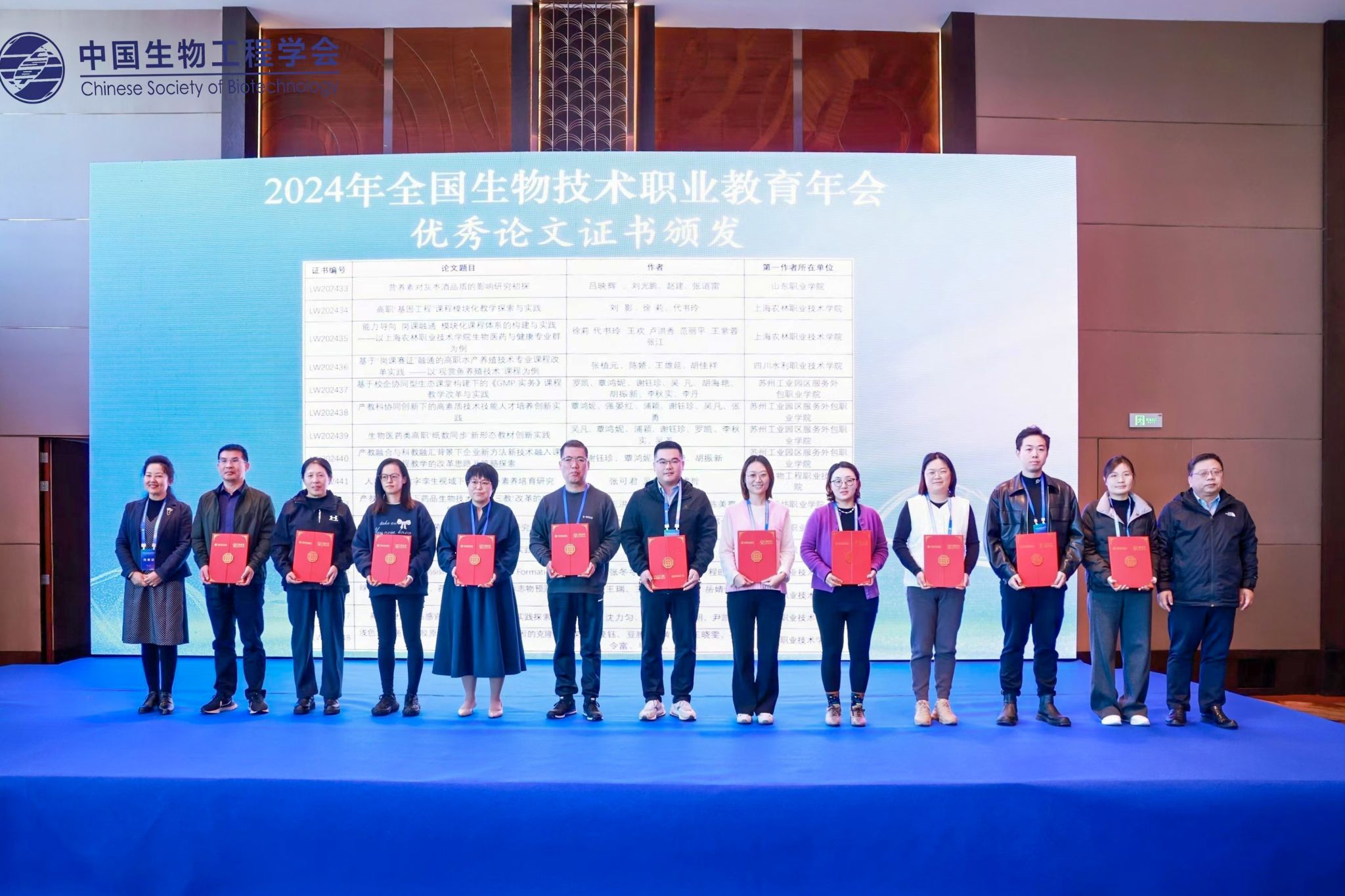 在随后召开的全国生物技术职业教育年会上,食品药品天行体育官方网站贾海健老师以《产教融合背景下药品生物技术专业“三教”改革的探索与实践》为题作典型发言,受到与会全国职业院校生物技术领域专家同行一致好评。会上还为2023年结题教改项目、2024年立项教改项目和年会优秀论文颁发证书,天行体育官方网站共有8个项目入选。