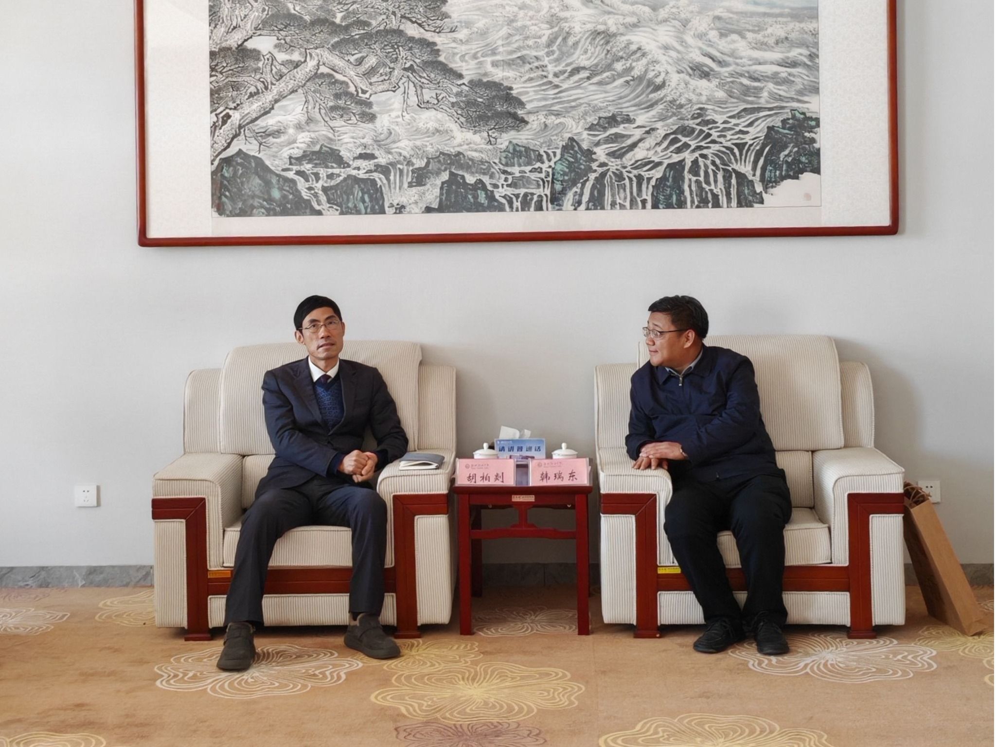 1月17日下午,新和成股份公司表彰大会在我院滨海校区举行。会前,天行体育官方网站党委副书记韩瑞东热情会见新和成股份公司副董事长、浙江新和成股份有限公司总裁胡柏剡先生一行。党委委员、办公室(统战部)主任(部长)刘志艳和化学工程天行体育官方网站相关负责同志参加。