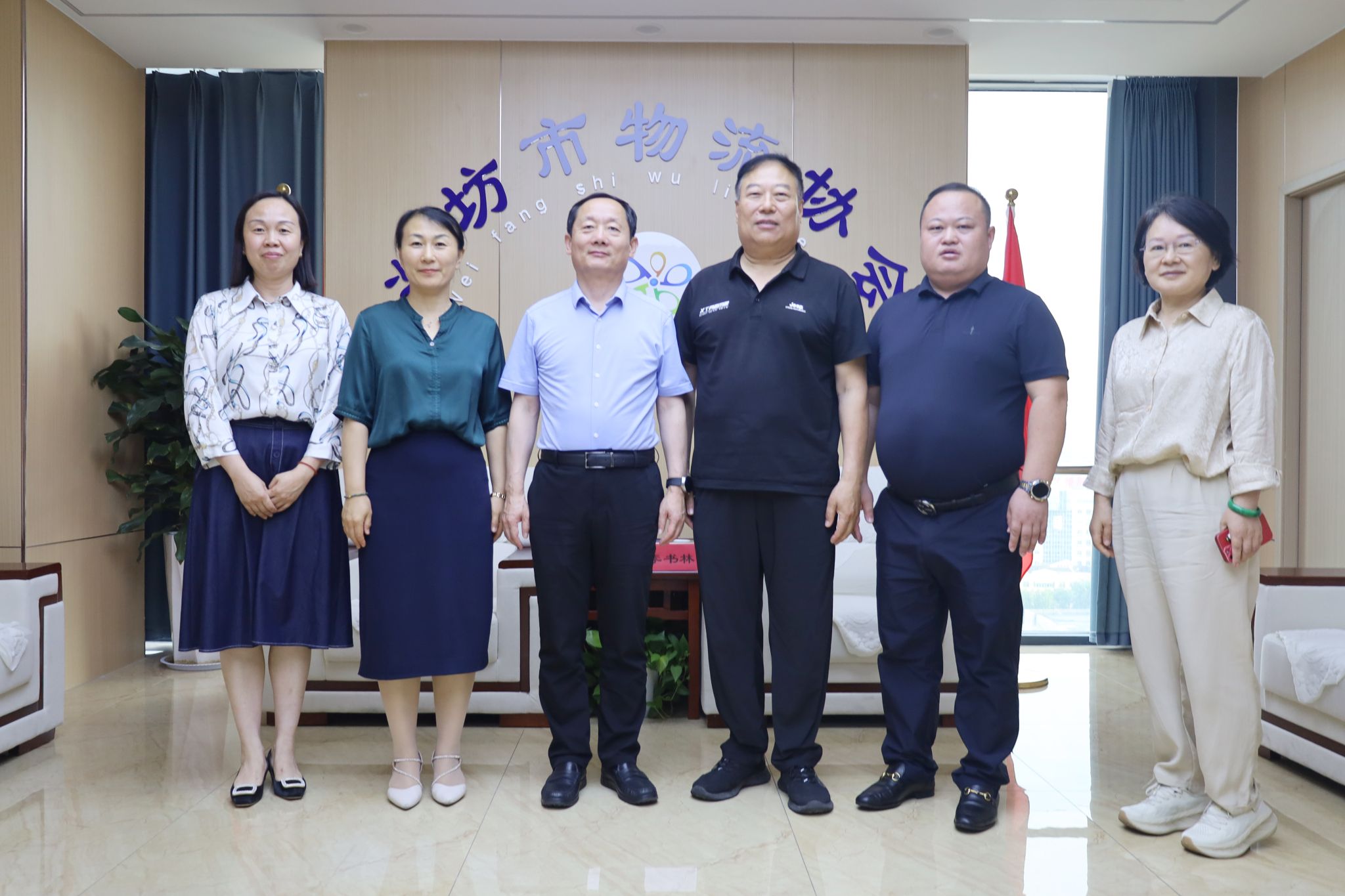 在潍坊市物流协会,王浩一行听取协会会长崔自元介绍了潍坊市物流行业的发展现状、未来趋势以及随着物流行业的智能化、数字化转型升级,对具备创新思维、专业技能和跨学科知识的复合型人才的需求日益迫切,协会非常希望能与天行体育官方网站开展各类合作。