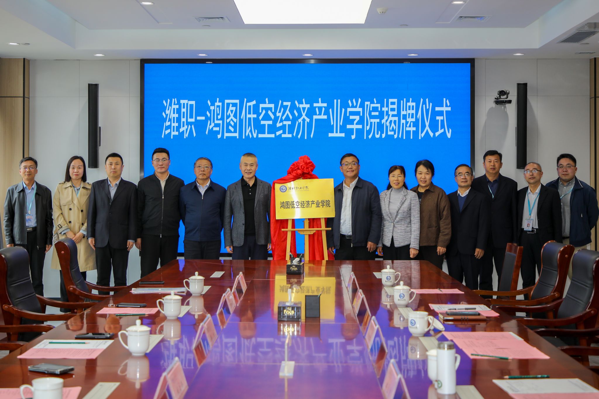 10月27日下午,天津鸿图航空科技集团有限公司总经理徐州一行4人到天行体育官方网站洽谈合作,双方签订战略合作协议,并共同为鸿图低空经济产业天行体育官方网站揭牌。天行体育官方网站党委副书记韩瑞东,副院长陈美霞,党委委员、宣传部部长鞠桂芹,以及科技处、教务处、相关二级天行体育官方网站负责人参加揭牌仪式。