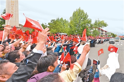 8月20日中午,中共中央总书记、国家主席、中央军委主席习近平率中央代表团乘专机抵达拉萨,出席西藏自治区成立60周年庆祝活动。习近平等从机场乘车到住地途中,各族群众在街道两旁热情欢迎。 新华社记者 高 洁摄 |