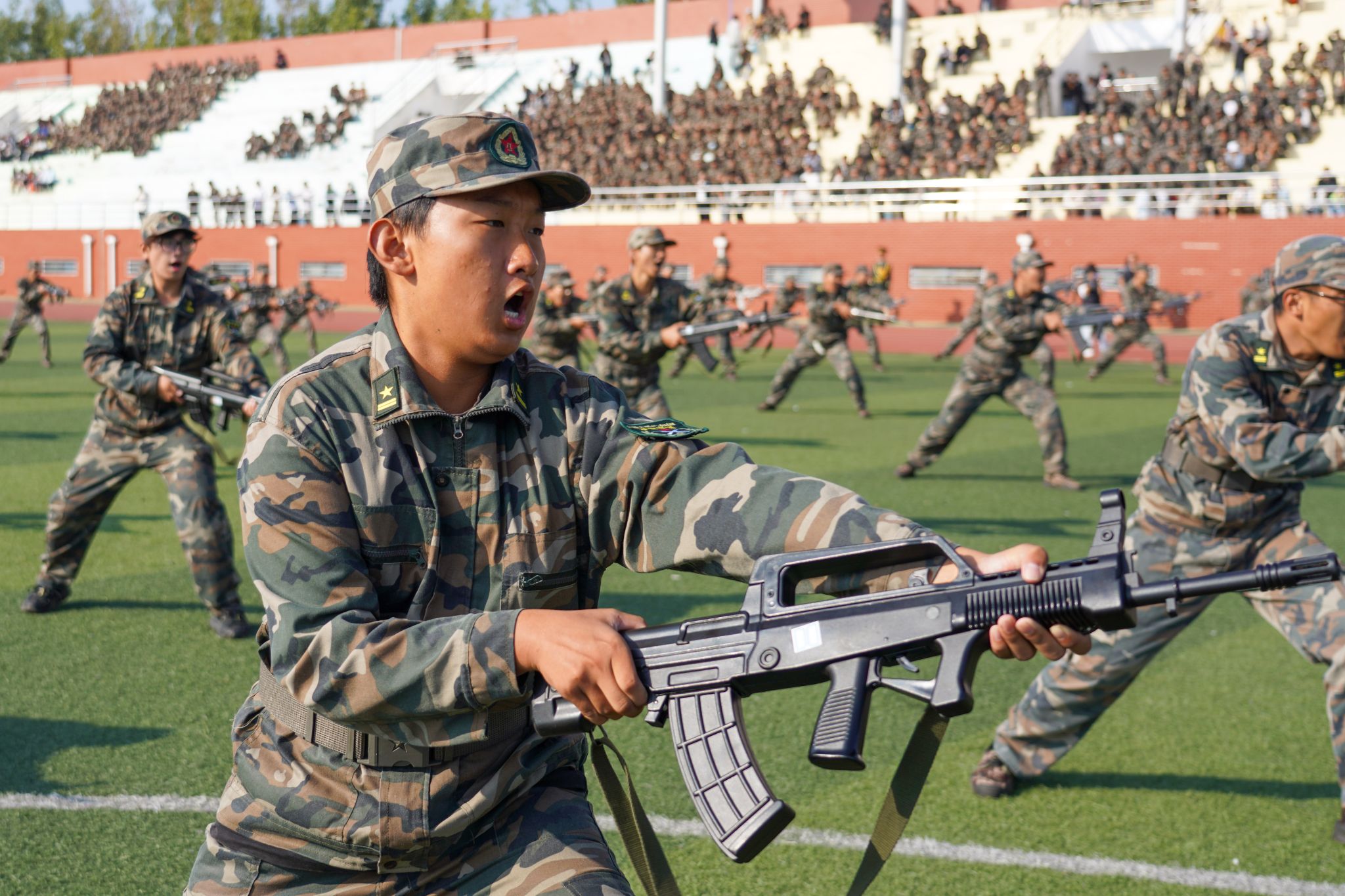 操场上,49个分列式方队整齐划一,精神抖擞,迈着矫健的步伐依次通过主席台,展现出潍职学子斗志昂扬的精神风貌。军训项目展示中,由各团组成的100名同学进行了威风凛凛刺杀操表演,刺杀操是军队的传统表演项目,也是近战歼敌的重要手段,强身健体的同时还能提升团队凝聚力;汽车工程天行体育官方网站80名同学组成的队伍进行了战术基础、战场救护演示,整个活动过程精彩纷呈、吸引了阵阵掌声。来自信息工程天行体育官方网站军体拳表演方队的500名同学通过军体拳表演和集体宣誓,向党和祖国汇报青春的坚定信念。最后,大会在全体新生高声呐喊“请党放心,强国有我”的庄严承诺中落幕。