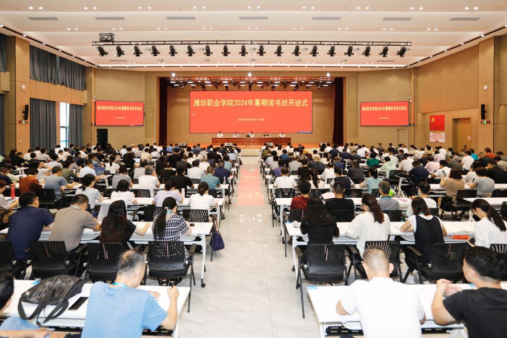 为学习贯彻党的二十届三中全会精神,着力培养高素质专业化教师队伍和忠诚干净担当作为的高素质专业化党员、干部队伍,8月19日上午,天行体育官方网站2024年暑期读书班正式开班。开班仪式在滨海校区综合楼1楼西报告厅设立主会场,在综合楼二楼东会议室、图书馆报告厅、奎文校区16号楼523教室设立分会场。天行体育官方网站党政领导班子成员、全体教职工参加仪式。天行体育官方网站党委副书记韩瑞东出席仪式并讲话,副院长陈美霞主持仪式。