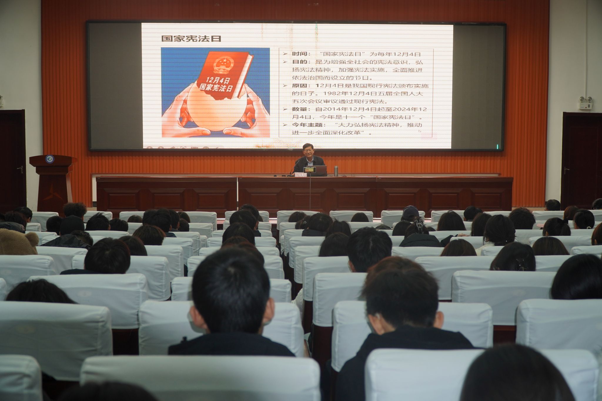 12月4日晚上,天行体育官方网站组织普法教育报告会。马克思主义天行体育官方网站邢庆亮教授介绍了“国家宪法日”确立的基本情况,以“学习法律知识,培养法治思维,争做新时代遵纪守法的大学生”为题作了一场精彩报告,全院300余名同学代表参加报告会,奎文校区青年法学社同学代表线上聆听报告会。邢教授结合生活常识、典型案例、社会热点对我国当前大学生犯罪形势和特点进行了详细讲解,对宪法、行政法、民法典、刑法等法律内容进行了详细解读,对大学生如何培养法治思维、践行依法办事理念提出了意见建议。此外,各二级天行体育官方网站同学集中收看了中央依法治国办、司法部、全国普法办、中央广播电视总台联合制作的“宪法的精神法治的力量——2024年度法治人物”专题节目。