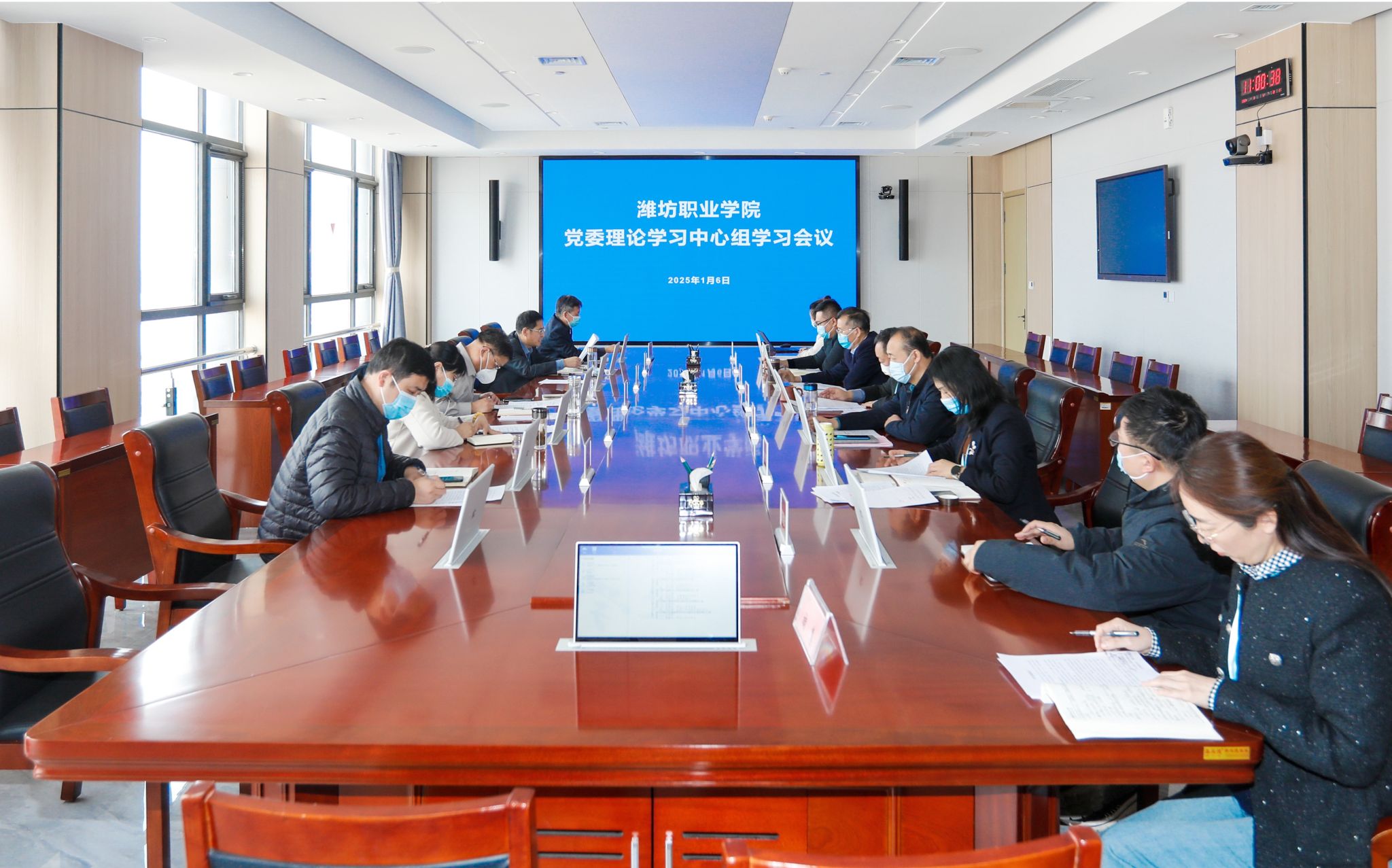 会议原文传达学习了中共中央总书记习近平在中共中央政治局民主生活会上发表的重要讲话、习近平总书记在庆祝澳门回归祖国二十五周年大会暨澳门特别行政区第六届政府就职典礼上的讲话以及《中共中央办公厅关于推进党纪学习教育常态化长效化的意见》《教育系统重大事故隐患判定指南》《中国共产党潍坊市第十三届委员会第八次全体会议公报》。