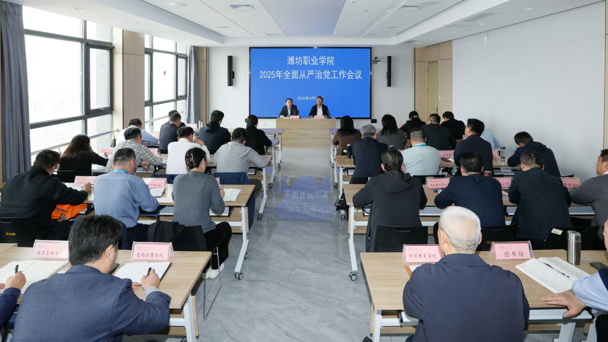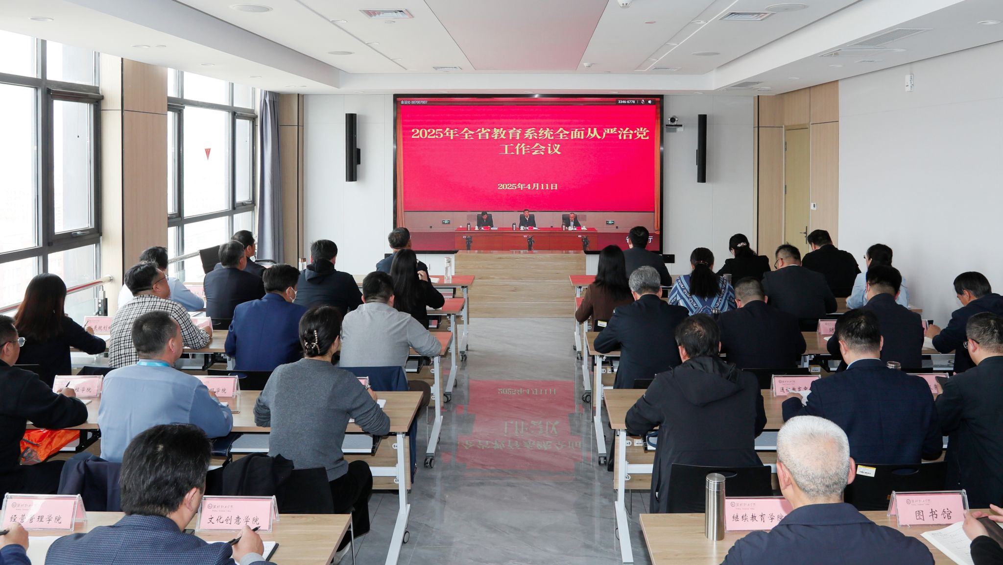4月11日下午,天行体育官方网站组织收听收看2025年全省教育系统全面从严治党工作会议并召开2025年全面从严治党工作会议。天行体育官方网站党委书记王浩,党委副书记、院长韩瑞东等天行体育官方网站领导班子成员出席,各党总支、直属党支部主要负责人及临时负责同志参加会议。韩瑞东主持会议。