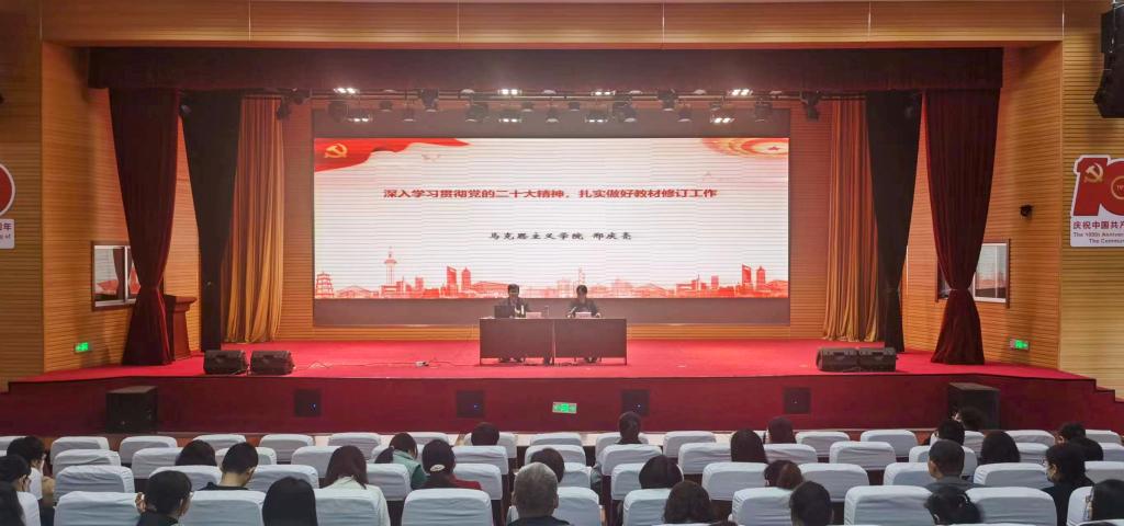 3月10日上午,“党的二十大精神进教材”专题学习培训活动在天行体育官方网站滨海校区图书馆报告厅举行。活动邀请马克思主义天行体育官方网站院长邢庆亮教授作专题讲座,天行体育官方网站80余名教师以教材编写人员身份参加了讲座。