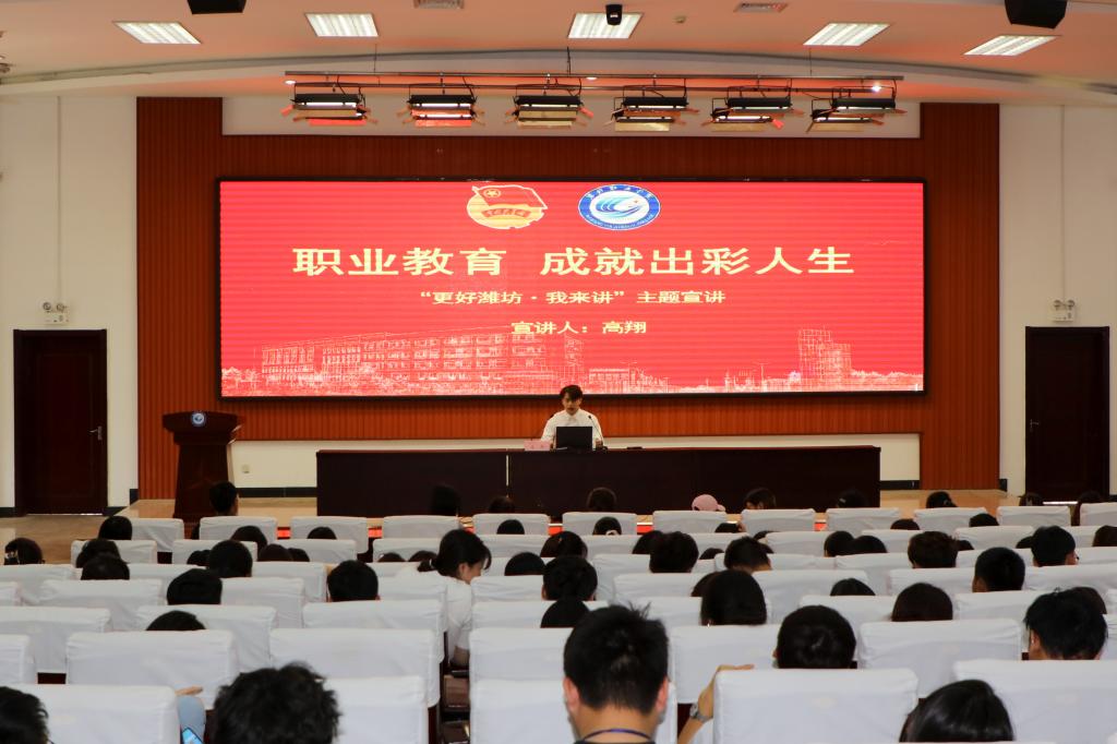 根据市委宣传部工作安排,6月4日,天行体育官方网站在滨海校区北区清泽楼报告厅举行了“更好潍坊·我来讲”主题宣讲报告会。本次宣讲主题为“职业教育成就出彩人生”,由机电工程天行体育官方网站王琦同学和经营管理天行体育官方网站高翔同学担任主讲人,学生代表约300人参加报告会。