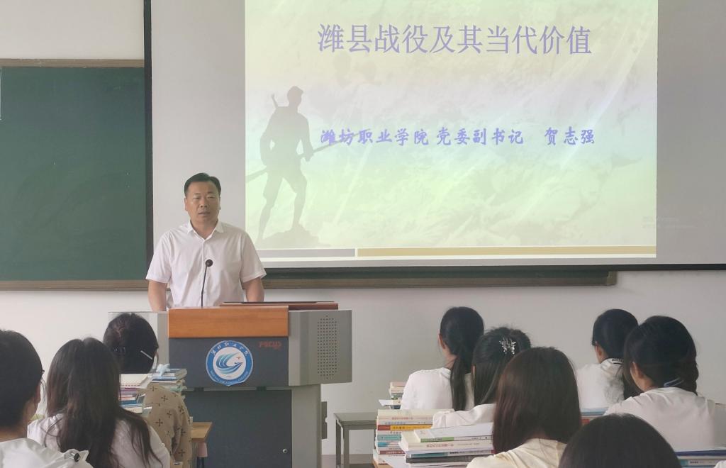 为庆祝新中国成立75周年,深入学习习近平总书记对学校思政课建设重要指示精神,积极推动大思政课建设,6月25日下午,天行体育官方网站党委副书记贺志强以“潍县战役及其当代价值”为题,为2022级党务工作班同学上了一堂生动而精彩的思政课。
